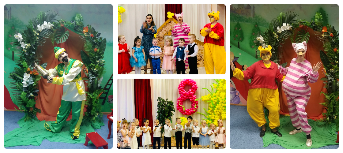 На празднике в подготовительных группах дети путешествовали на ковре-самолете в «Мамину страну», с настоящим джином, который появился из волшебной лампы. И это далеко не все сценарные задумки, реализованные музыкальным руководителем Валентиной Александровной Климовой. Если вы бывали на наших утренниках, значит вы точно знаете, что каждое мероприятие в детском саду готовится с любовью и творческой отдачей педагогов. И прошедший весенний праздник прямое тому доказательство. А мы в свою очередь от души благодарим мам и бабушек наших воспитанников – самых главных, любимых и долгожданных зрителей – большое вам спасибо за участие и поддержку!